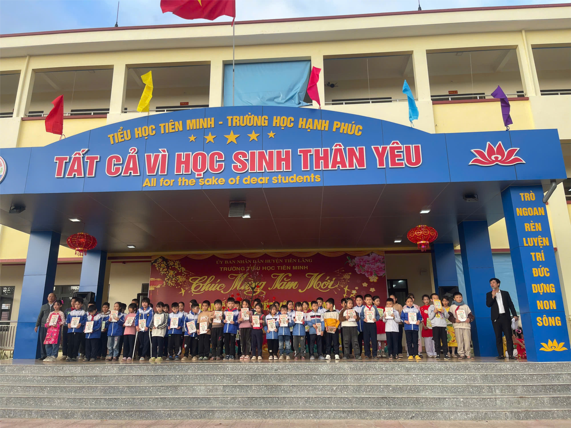 Chiều ngày 24/1, tại Trường Tiểu học Tiên Minh đã diễn ra buổi văn nghệ mừng xuân và tặng quà cho học sinh có hoàn cảnh khó khăn đón năm mới Ất Tỵ 2025. Tham dự có lãnh đạo xã Tiên Minh, đông đảo thầy cô giáo, phụ huynh, học sinh nhà trường.