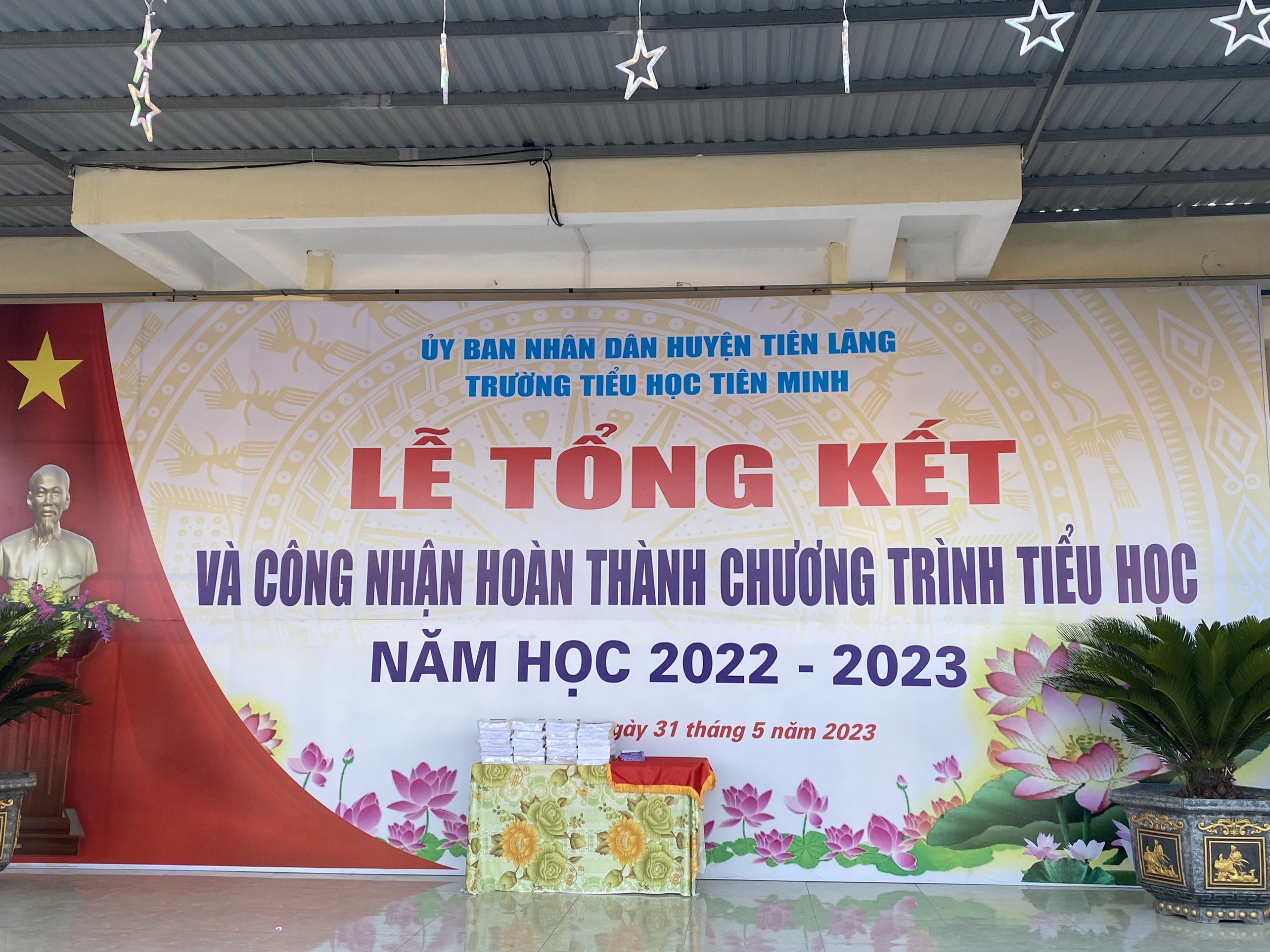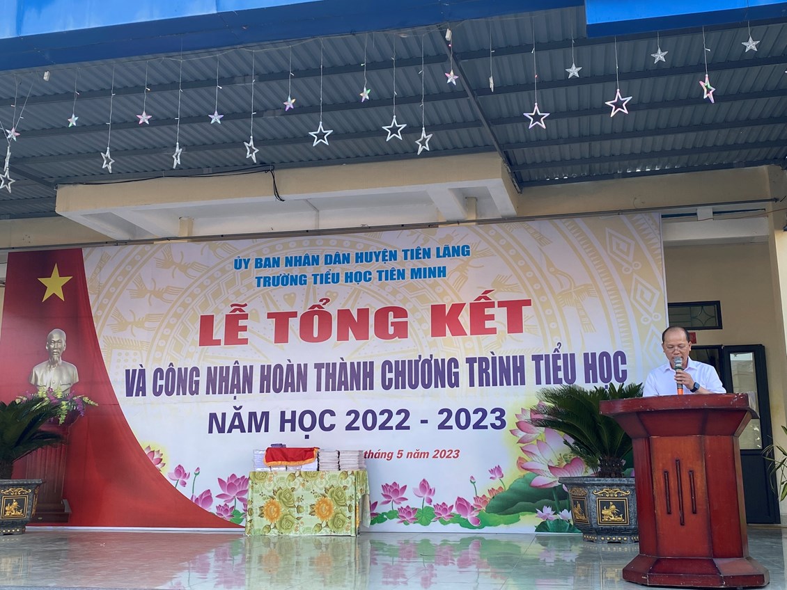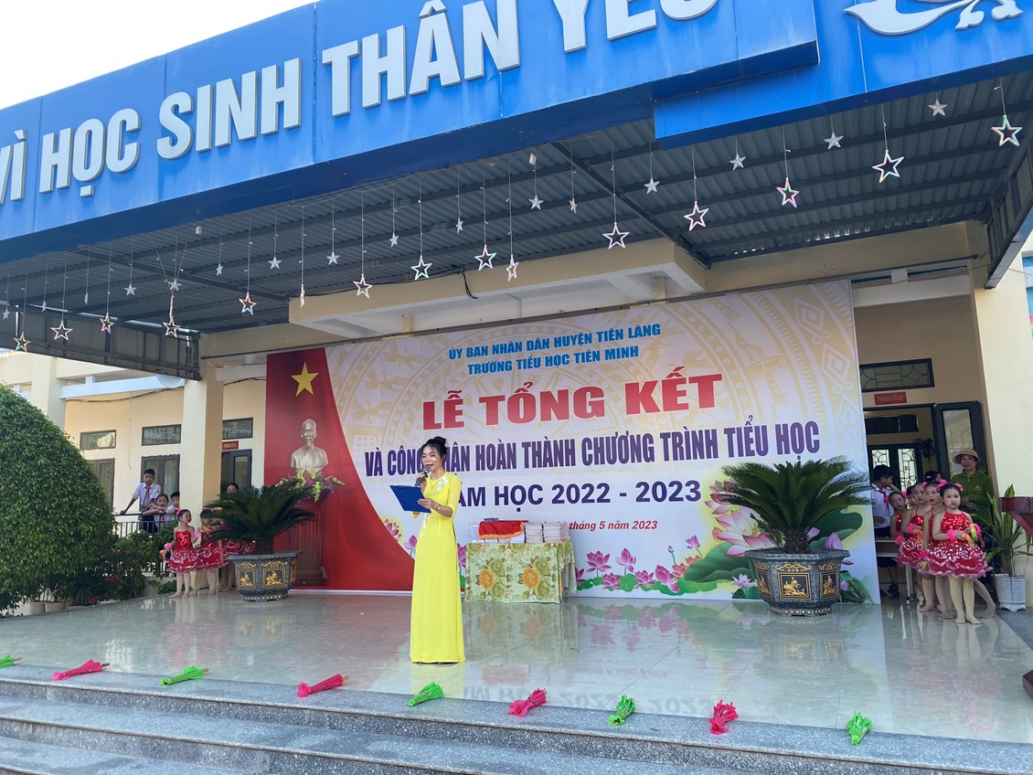 🌻 Trong không khí tưng bừng kỉ niệm 133 năm ngày sinh Bác Hồ kính yêu 19/5/1890 – 19/5/2023 , 68 năm ngày giải phóng Hải Phòng và Lễ hội hoa phượng đỏ 13/5/1955 – 13/5/2023, và mừng kỉ niệm 82 năm ngày thành lập Đội TNTP Hồ Chí Minh 15/5. Căn cứ kế hoạch thực hiện nhiệm vụ năm học 2022 - 2023, Nghị quyết Chi ủy. Sáng này 31/5/2023, Trường Tiểu học Tiên Minh long trọng tổ chức Lễ tổng kết năm học và trao giấy chứng nhận hoàn thành chương trình tiểu học năm học 2022- 2023.