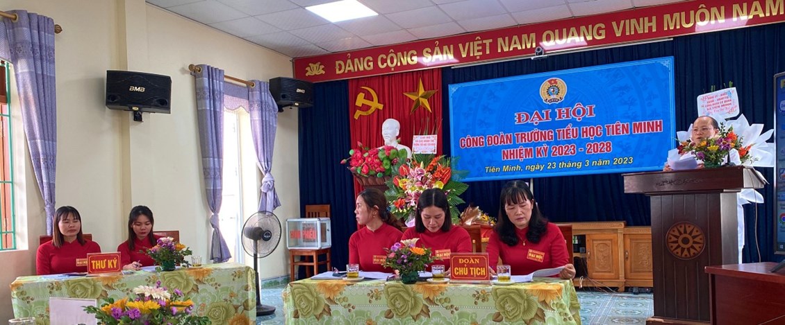🍀Chiều ngày 23/3/2023, Công đoàn trường Tiểu học Tiên Minh long trọng tổ chức Đại hội Công đoàn nhiệm kỳ 2023 -2028. Đại hội Công đoàn nhằm tổng kết hoạt động công đoàn nhiệm kỳ 2017 -2023; phương hướng, nhiệm vụ nhiệm kỳ 2023 -2028; bầu Ban Chấp hành Công đoàn và đại biểu dự Đại hội công đoàn huyện