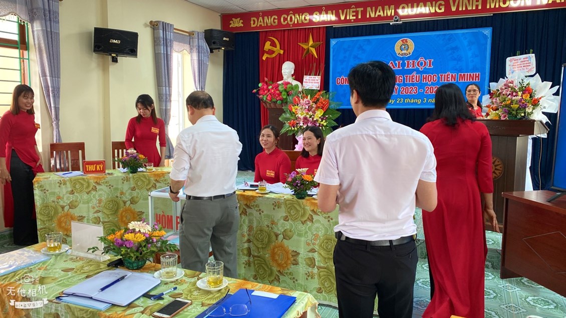 🍀Thực hiện Kế hoạch số 22/KH-LĐLĐ ngày 08/11/2022 của Liên đoàn Lao động huyện Tiên Lãng về việc tổ chức Đại hội nhiệm kỳ công đoàn các cấp tiến tới Đại hội XI Công đoàn huyện, Đại hội XV Công đoàn Thành phố và Đại hội XIII Công đoàn Việt Nam, nhiệm kỳ 2023 - 2028; Thực hiện Kế hoạch số 03/KH - CĐ ngày 01 tháng 03 năm 2023 và Nghị quyết chi ủy Chi bộ ngày 06 tháng 03 năm 2023, Công đoàn Trường Tiểu học Tiên Minh tổ chức Đại hội nhiệm kỳ 2023 - 2028.