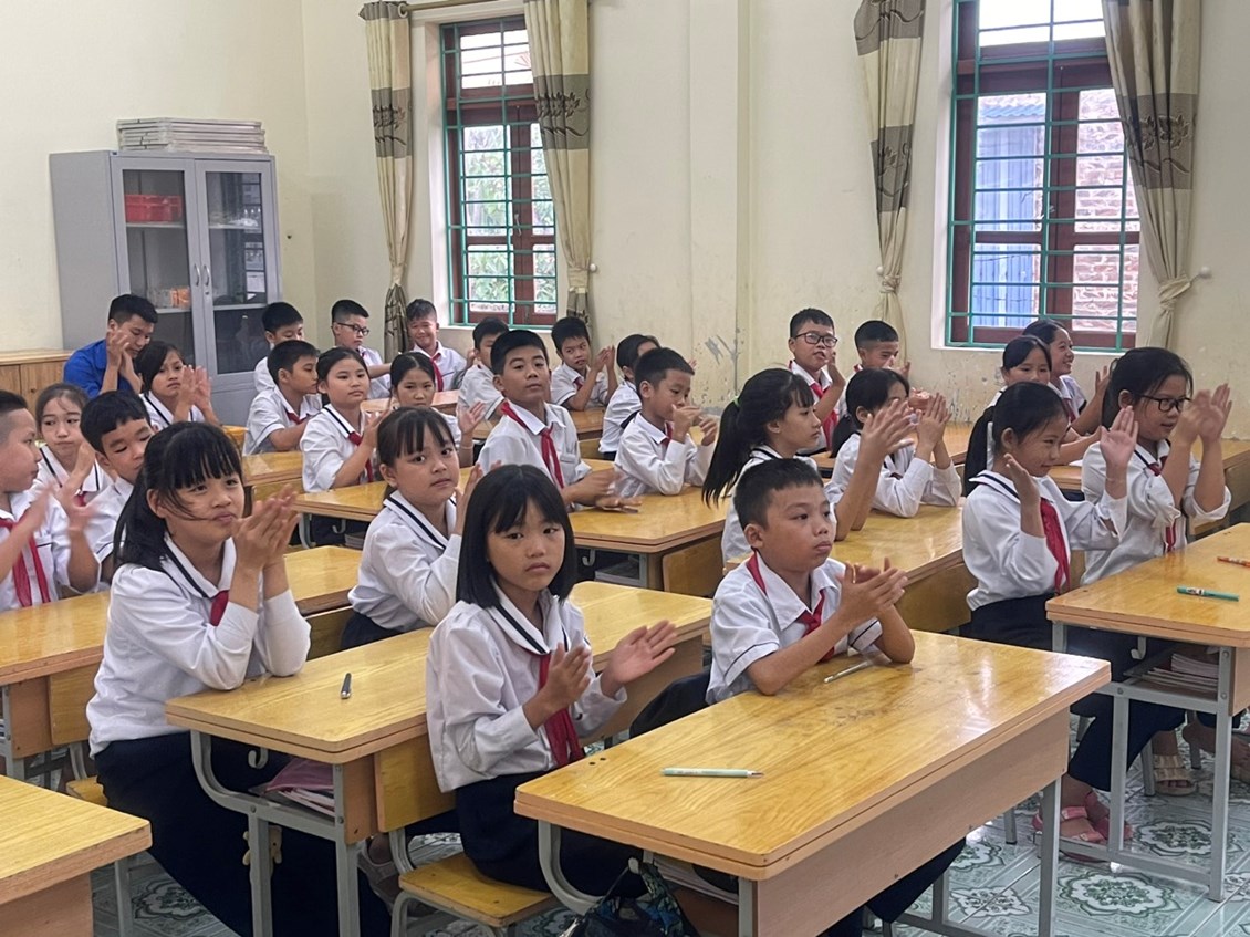 Các thầy cô giáo trong nhà trường và 40 bạn Đội viên tiêu biểu đến từ 8 chi đội khối 4,5