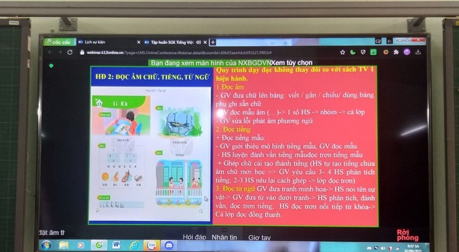 Dịch bệnh COVID-19 không chỉ gây ảnh hưởng đến hoạt động dạy học mà còn ảnh hưởng đến công tác chọn lựa sách giáo khoa mới của nhiều địa phương bị gián đoạn. Để kịp ứng phó với tình hình mới, Nhà xuất bản GDVN đã chuyển hướng thực hiện bằng hình thức online, Trường TH Tiên Minh dự lớp tập huấn trực tuyến cho giáo viên để có thể sử dụng hiệu quả bộ sách giáo khoa mới. Thực hiện theo Công văn số 195/ GDĐT V/v tham gia tập huấn trực tuyến bồi dưỡng sử dụng sách giáo khoa lớp 1, lớp 2 năm học 2021-2022 cấp Tiểu học.