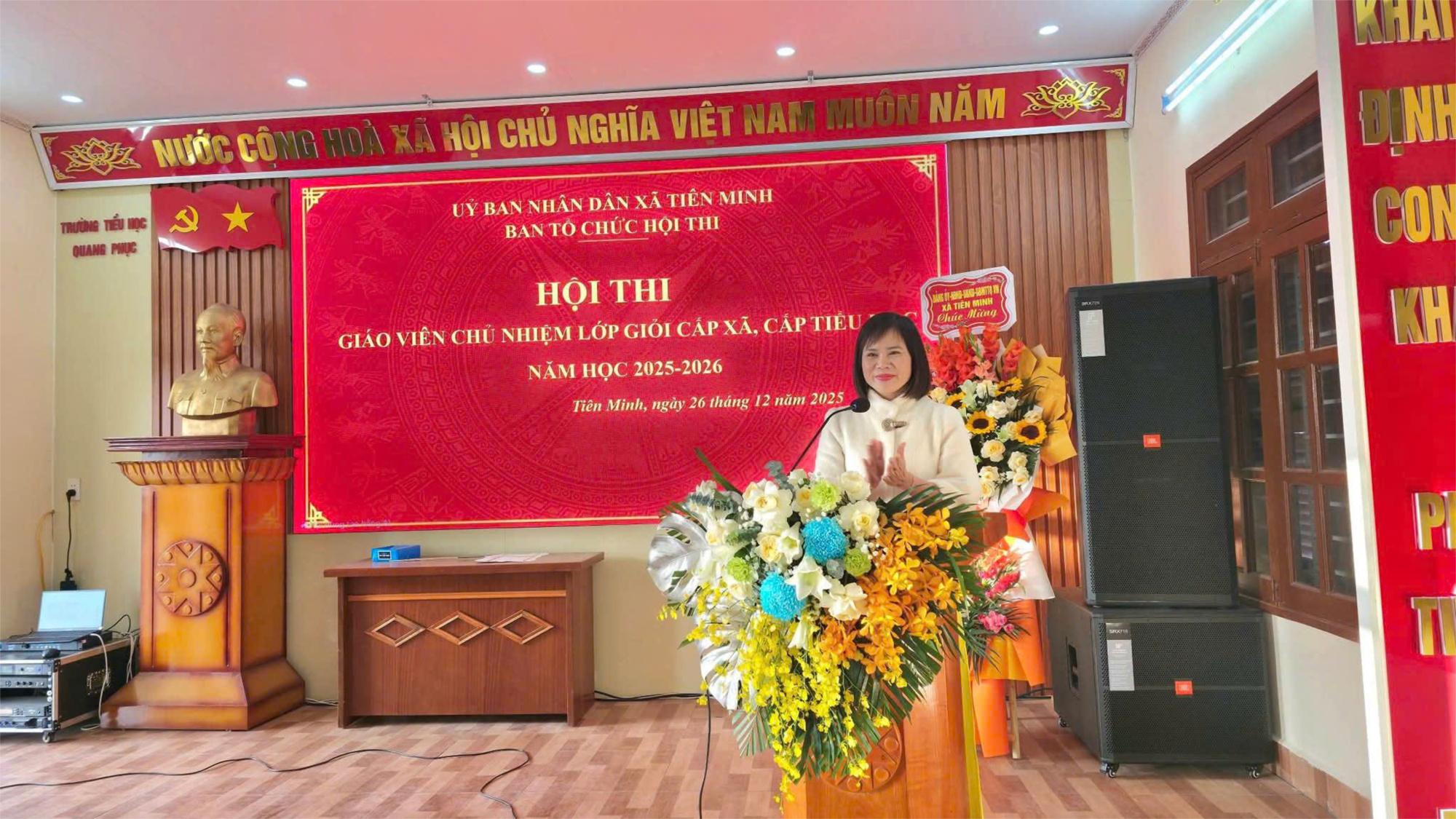 Thực hiện Kế hoạch số 85/KH-UBND ngày 26/11/2025 của Ủy ban nhân dân xã Tiên Minh, sáng 26/12/2025, tại trường tiểu học Quang Phục, UBND xã Tiên Minh đã long trọng tổ chức khai mạc Cuộc thi giáo viên chủ nhiệm lớp giỏi cấp xã năm học 2025–2026.