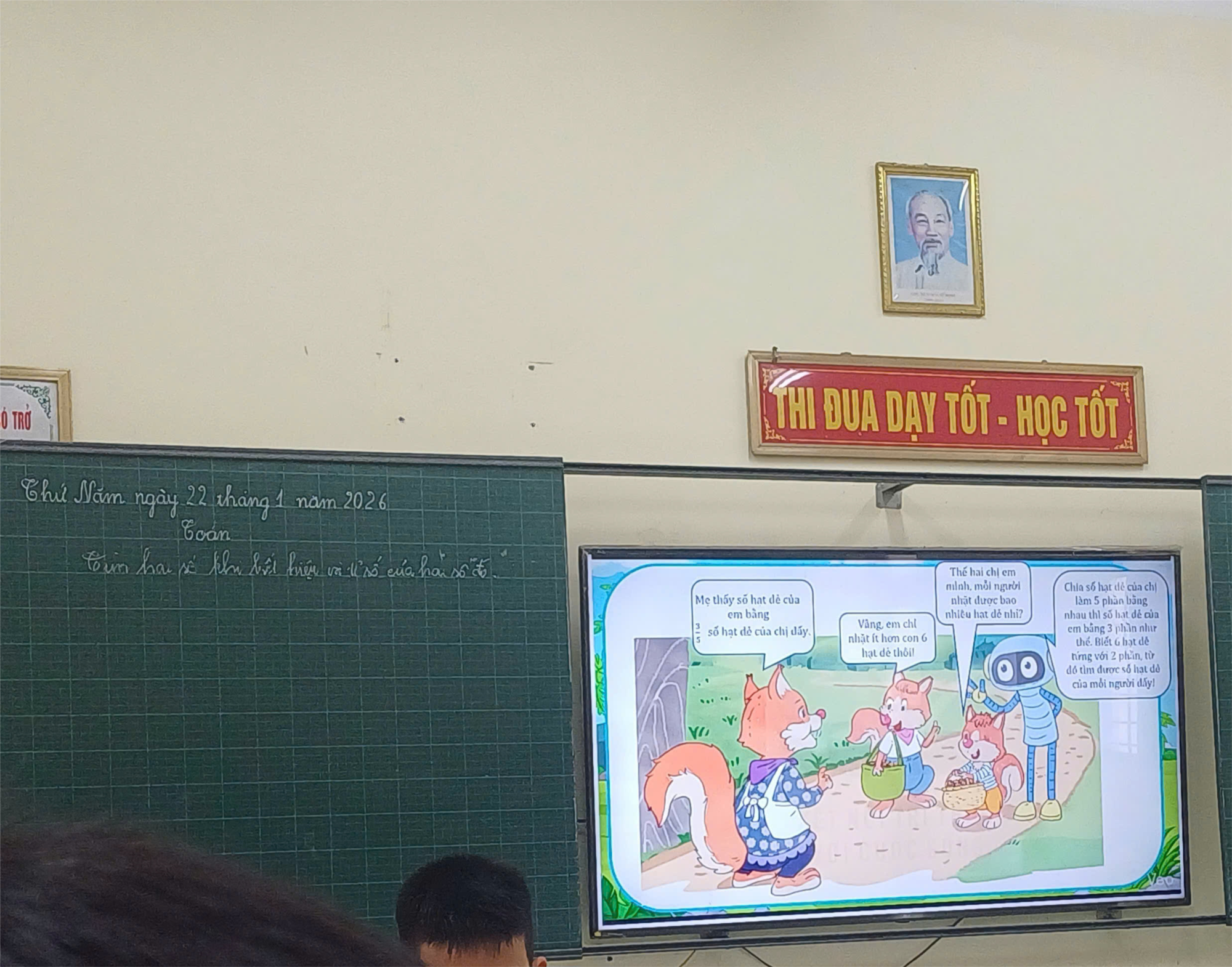 Thực hiện kế hoạch công tác tháng 01/2026, chiều ngày 22/01 BGH chỉ đạo tổ chuyên môn- Tổ 3 lên chuyên đề: Ứng dụng AI trong dạy học môn Toán theo chương trình GDPT 2018. Về dự chuyên đề có các đồng chí Tổ trưởng, tổ phó chuyên môn các tổ khối và giáo viên trong toàn trường. Đồng chí Phạm Văn Tráng dạy tiết Toán 5. Tiết dạy của các đc đã mang đến không khí lớp học vui vẻ, sáng tạo. Học sinh được thực hiện các hoạt động học tập một cách tự nhiên, hợp tác. Giáo viên đã sử dụng CNTT và ứng dụng AI linh hoạt, đổi mới, phù hợp. Tiết dạy của đồng chí được hội đồng sư phạm nhà trường đánh giá cao.